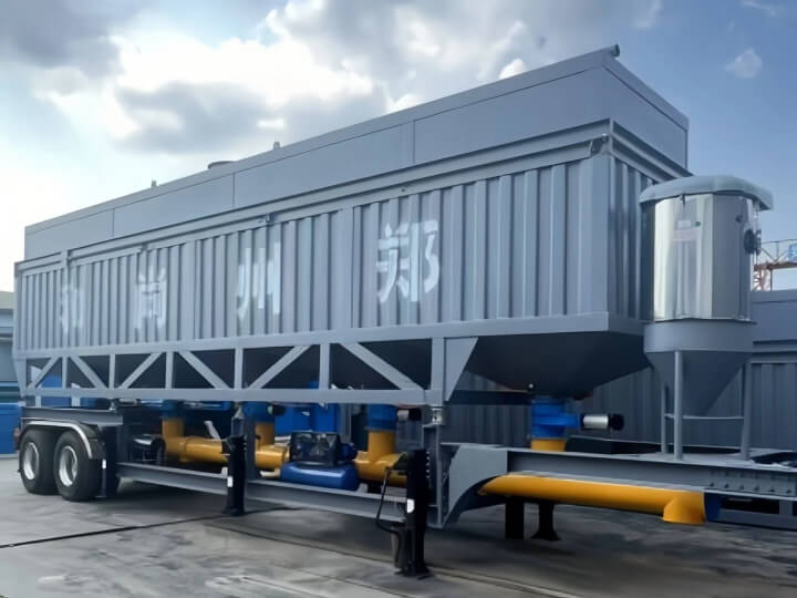 It features an enclosed storage space and a dedicated feed and discharge system (such as a screw conveyor). It not only meets the temporary storage needs of bulk materials like cement, but also allows for flexible mobile operations in various locations, such as construction sites and ports. It is particularly suitable for small and medium-sized projects or those requiring frequent relocation, balancing storage efficiency with site adaptability.
