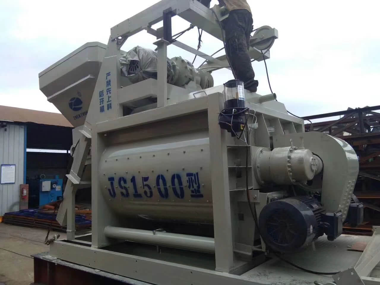 JS1500 concrete mixer is a kind of forced-type twin-shaft mixer that mixes hard, plastic, and lightweight aggregate concretes and mortars. It’s compact, energy-efficient, and offers high-quality, rapid mixing with easy operation. The JS1500 concrete mixer has a 1500L drum capacity and an output of up to 75 cubic meters of compacted concrete per hour.