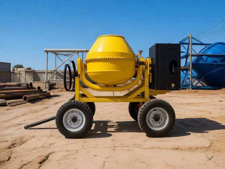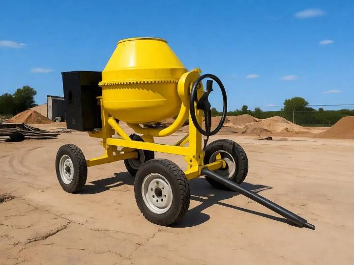 | Tilting Mechanism | A handwheel or lever system that allows the operator to set the drum at the mixing angle and then lower it for discharge. |