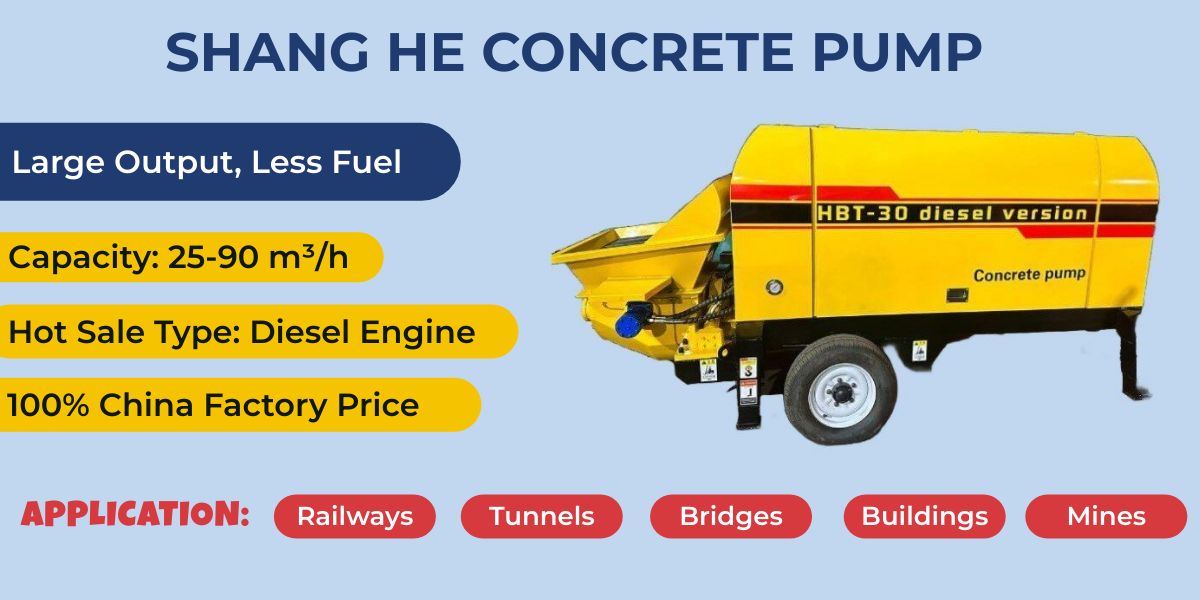 Shanghe has over 40 years of production experience and supplies concrete pump with 100% factory price.