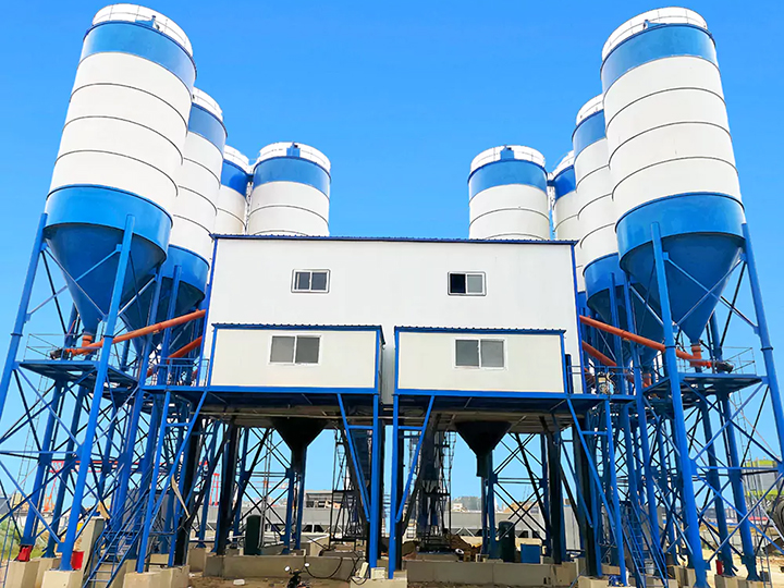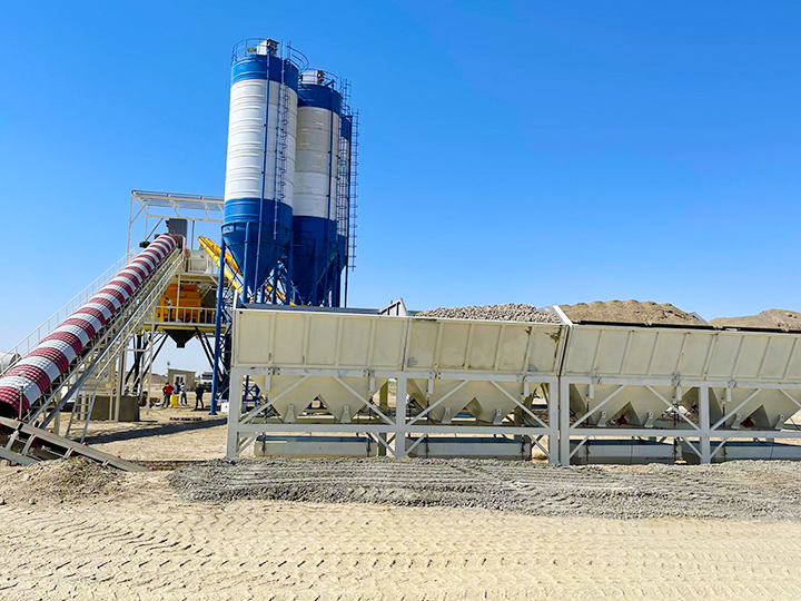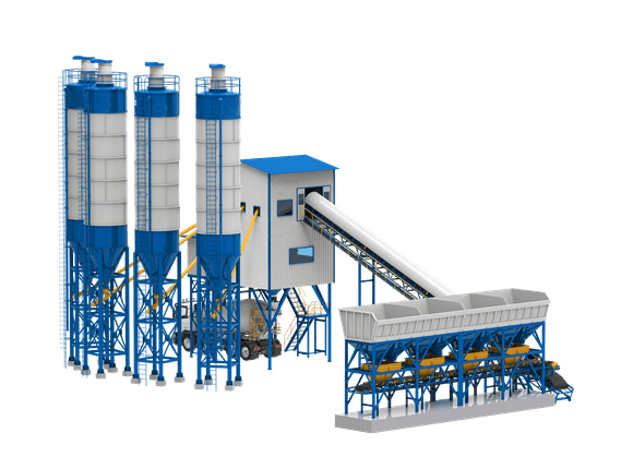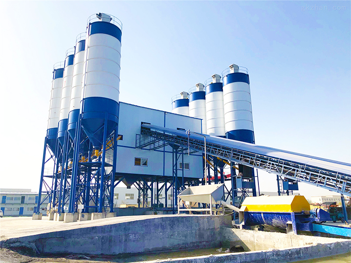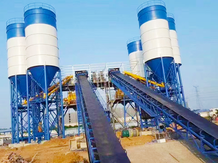 The aggregate is discharged into the aggregate measuring hopper through the discharge door of the aggregate bin at the batching station for measurement. After measurement, it is unloaded onto a far rotating flat belt, which is sent to the inclined belt conveyor. The inclined belt conveyor then transports the aggregate to the waiting hopper at the top of the mixer for instructions. At the same time, cement and fly ash are transported to their respective measuring hoppers by screw conveyors for measurement. Water and admixtures are pumped to their respective measuring hoppers by water pumps and admixture pumps for measurement. After the various materials are measured, the control system sends instructions to start sequentially feeding them into the mixer for mixing. After mixing is completed, the discharge door of the mixer is opened to unload the concrete into the mixing and transportation through the discharge hopper, and then enter the next working cycle.